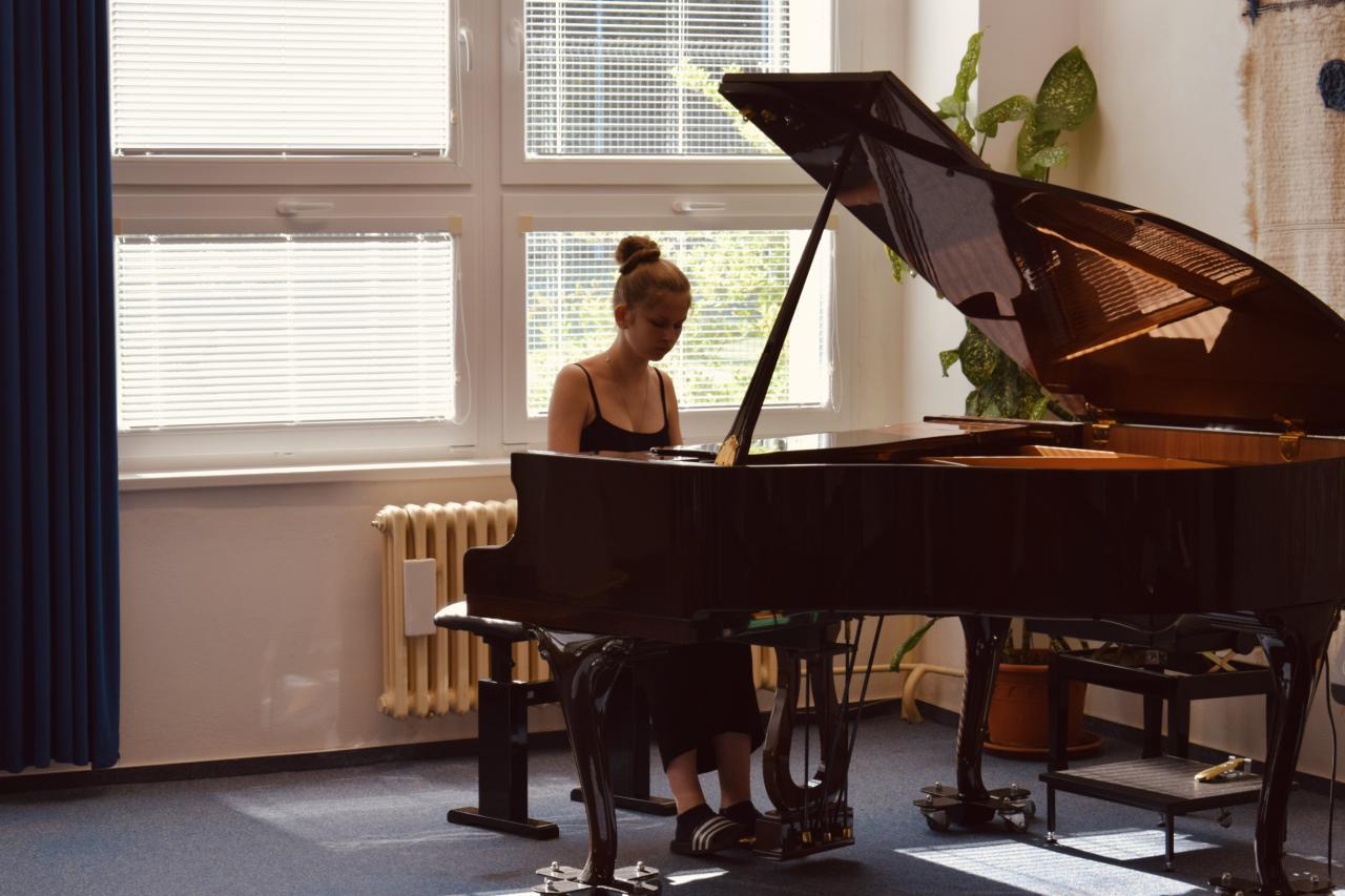 Hra na klavír: Karla Hmolková a Nicol Foremanová